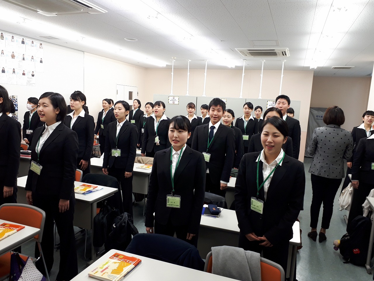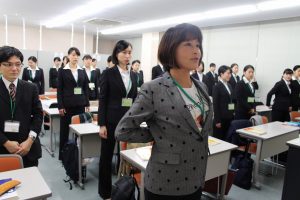 この時間は「就職実務」なのですが、なぜかみんな起立していますね