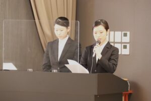 模擬葬儀とは葬儀(お別れ会)を学生だけでプロデュース!受付や司会、誘導などもすべて学生だけで行います。