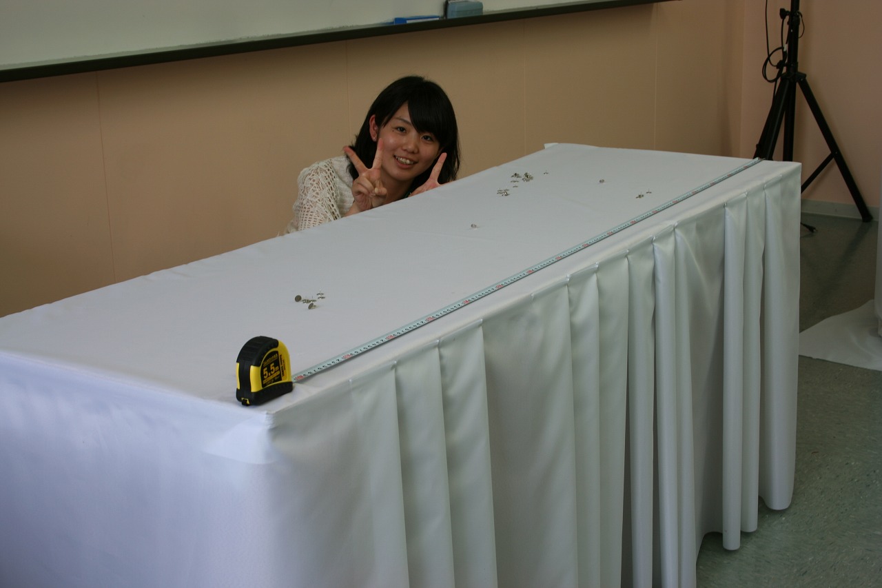 それでも画鋲を一つひとつ丁寧に刺し、白布を張っていきました。