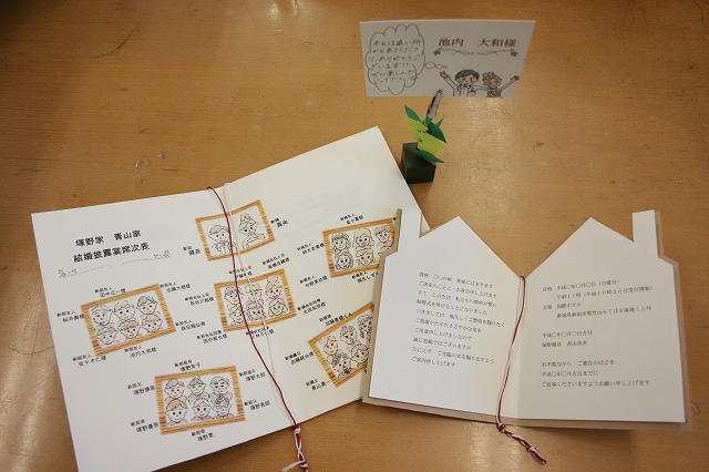 手作りの招待状や席次表を作成し、プレゼンテーションを行いました