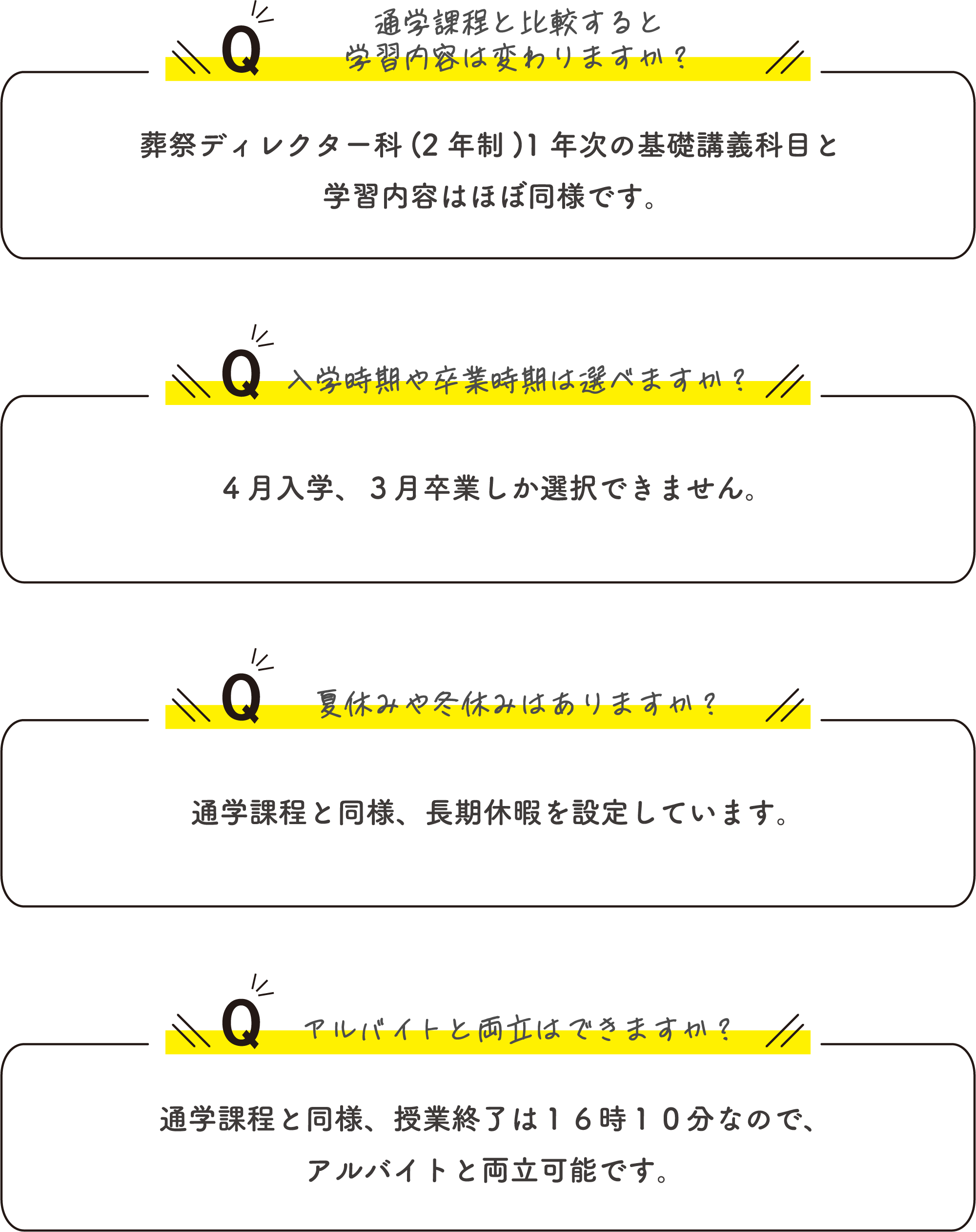 ほとんどの授業を自宅で受けられ、葬祭業界に必要な知識と対応力を身に付けることができます。